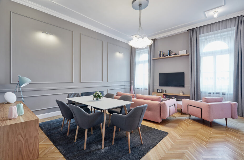 The property is located close to the Hungarian Opera House in the sixth district in a recently renovated four-storey building that dates back to the 19th century. The property was upgraded with individual design solutions, new wood parquet, original wood worktop and premium category materials. The furniture has been specially created by the designers to make the best possible use of space.